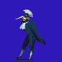 He appears in this first game alongside a slate of other abandoned designs (including his friend Caim) sporting a frumpy bald head from which a pentagram necklace hangs, apparently maneless but with shocks of red fur on the legs that seem to evoke the same; fairly distinct but recognizable. In Majin Tensei II he shares the spindly proportions that mark much of the game's sprite design, demonstrating a more abstracted look with toothy maw and shaggy hair reminiscent of Shigeru Mizuki's oeuvre. Finally, his Giten Megami Tensei take is simply an adaptation of the design created for Decarabia in the original Shin Megami Tensei, only cloaked in the fleshy texture that defines a good portion of the game's suggestive art design.